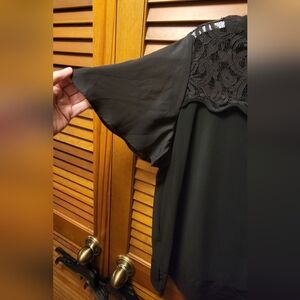 Anne Klein Black Boxy Embellished Short Sleeve Blouse 1X