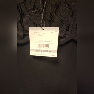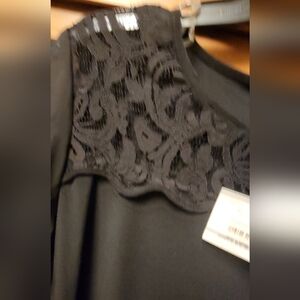 This chic black blouse by Anne Klein features a boxy silhouette with short sleeves and elegant embellishments. The top is crafted from a soft material, offering a comfortable yet stylish fit. Perfect for adding a touch of sophistication to any outfit.