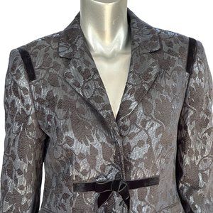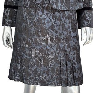 Anne Klein Black Brocade Jacquard Skirt Suit with Velvet Bow Details 8