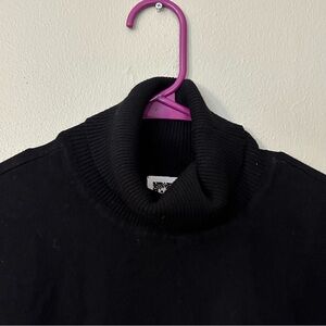 Elegant black cowl neck sweater. Short sleeves for chic style. Perfect for layering.