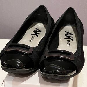Anne Klein Black Flats with Rounded Toe and Glossy Finish