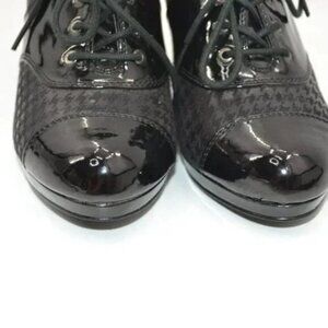 Anne Klein Black Houndstooth Patent Leather Cap Toe Booties Loafer Pump Heels 7