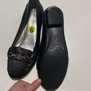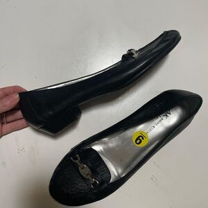 Ann Klein Flex black leather kitten heel loafers with silver hardware, brand new never worn size 9!