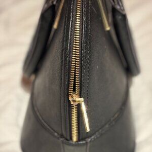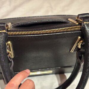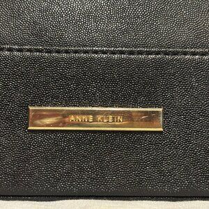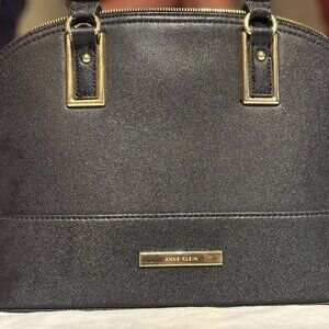 Anne Klein Black Leather Bag with Gold Trim