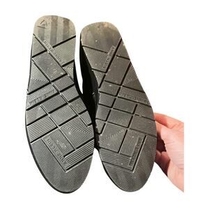 Anne Klein Black Leather Mary Jane Wedge Heels Size 7M classic old money preppy