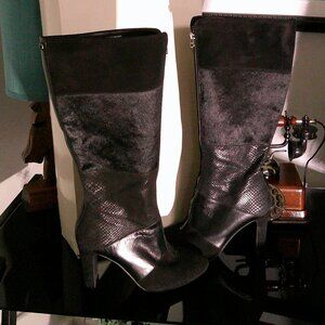 Anne Klein Black Leather & Suede Knee High Boots 3" Heel Size 9