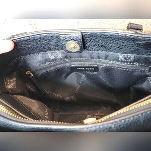 Excellent pre-owned condition. No rips, stains, or tears, or fraying. Almost like new. Smoke free, pet friendly, home. Triple compartment, magnetic close, zipper close, anne klein, black, purse, handbag.