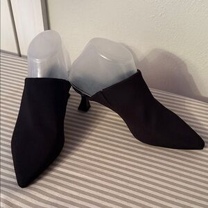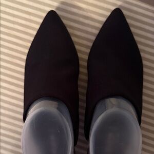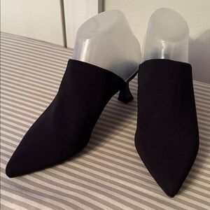 Chic black mules with a sleek design. Perfect for versatile styling. Like new condition
