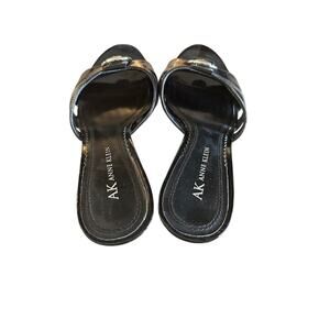 Anne Klein Black Patent Leather Buckle Slip-On Kitten Heels Women’s 8M