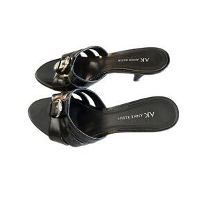 Anne Klein heels, black kitten heels, buckle mules, slip-on heels, office shoes, classic black pumps, patent leather heels, Y2K heels, evening shoes