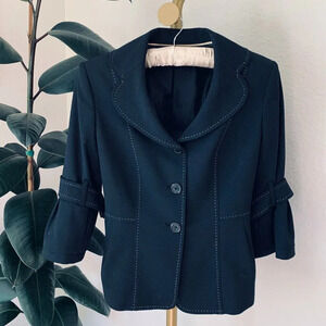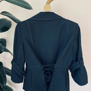Anne Klein Black Peplum Jacket Corset Tie Back 3/4 Sleeve Size 6P Small