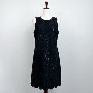 Anne Klein Black Sequined Embroidered Scallop Sleeveless Dress
