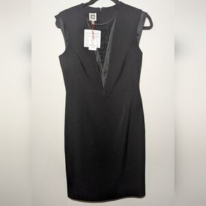 Anne Klein Black Sheath Dress with Extended Shoulders Lace Inset Women's Size 4