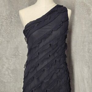 Anne Klein Black Silk One Shoulder Ruffle Dress Womens Size 12 Elegant Party