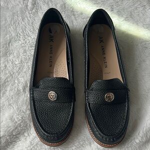 Anne Klein Black Slip-On Loafers with Moccasin Design