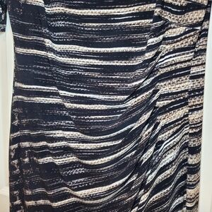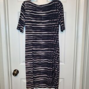Anne Klein Black Tan White Striped Bodycon Dress Women’s Size 12.