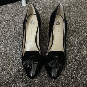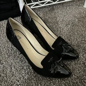 Anne Klein Black Tassel Leather/Suede Heels Size 8