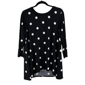 Anne Klein Black White Polka Dot 3/4 Sleeves High Low Tunic Top Plus 0X NWOT