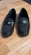 Elegant black loafers with woven design. Features a stylish emblem on the strap. Ideal for versatile wear.