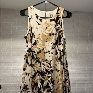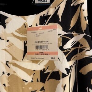 NWT. This chic sundress by Anne Klein showcases a striking black and cream floral pattern, perfect for casual or work settings. The sleeveless design features a scoop neckline, offering a comfortable and stylish fit. Its midi length adds a touch of elegance to this versatile piece. Smoke free home.