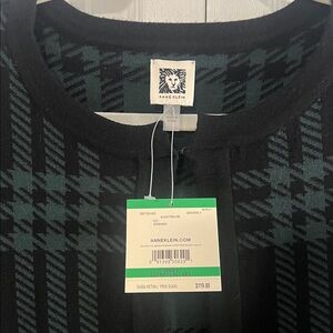 Anne Klein Black and Green Checkered Cardigan Sweater