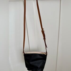 Anne Klein crossbody bag. Features an adjustable brown leather strap for comfort. Surprisingly roomy. Perfect for about town or girls bight out.
