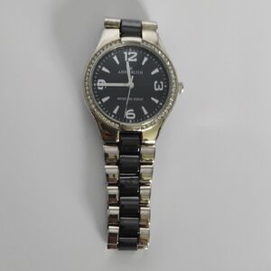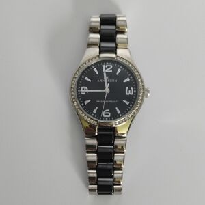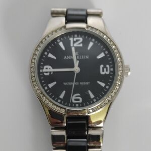 Chic Anne Klein watch with a black dial. Silver-tone bezel and bracelet links. Perfect for any occasion. In good condition. Needs new battery, untested.
