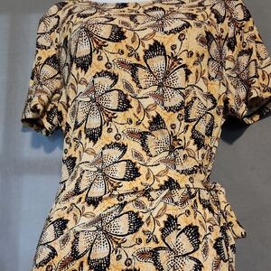 Anne Klein Black and Tan Midi Flutter Sleeve Dress Size 12