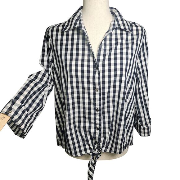 Anne Klein Black and White Button Up High Low with Front Tie Large
