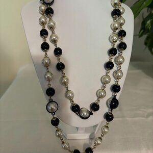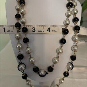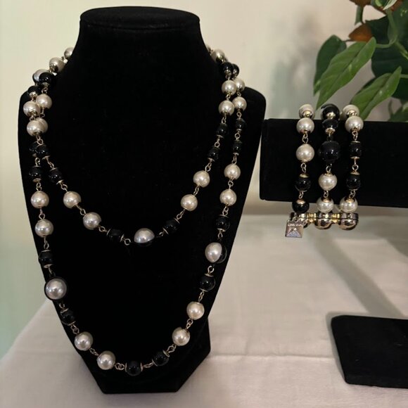 Anne Klein Black and White Pearl Necklace (43") and Bracelet (8") with 3 Strands