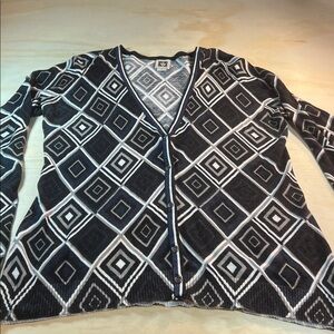 Anne Klein Black, white and Gray Knit Cardigan Sweater Sz M