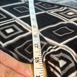 Chic knit sweater with a subtle geometric design. Features a comfortable fit and classic style, this is a perfect layering piece. See photo for measurements the waist does come in ever so slightly. This is a soft cotton blend sweater is a gently used piece still in excellent shape. Comes from a smoke free household.