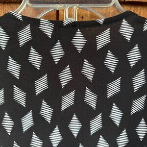 In Excellent Condition! Black and White Geometric Print Anne Klein Stretch Knit Faux Wrap Dress in Women's 16 - Versatile dress goes from day to night in a comfy stretch knit, the wrinkle resistant knit is perfect for travel too.
