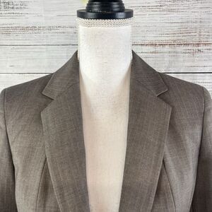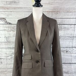 Anne Klein Blazer Jacket size 2 Brown Pinstripe Stretch Career Professional Suit