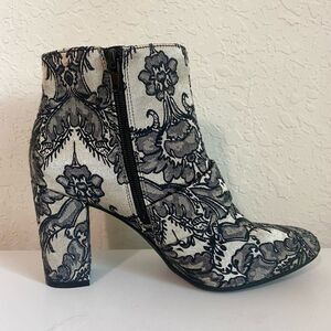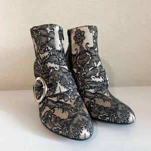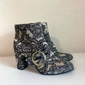 Anne Klein Block Heel Textile Gray with Black Stitching Booties size 7.5