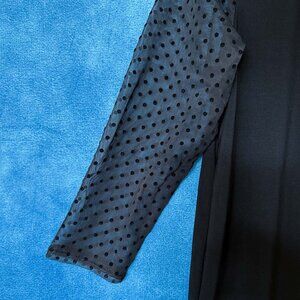 Black 96% polyester, 4% elastane. Sheer 3/4 polka-dot sleeves.
