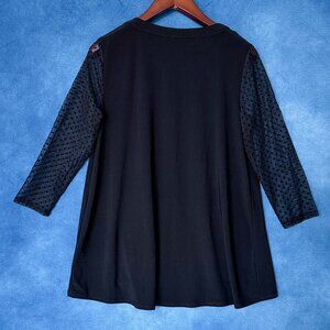 Anne Klein Blouse, Black Sheer-Sleeved, Large