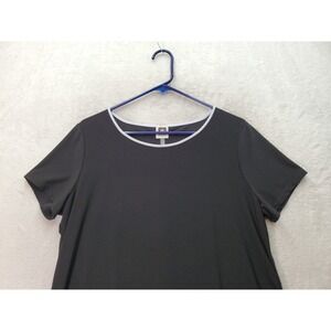 Anne Klein Blouse Top Women Size Large Black Short Sleeve Round Neck Back Button