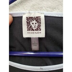 Anne Klein Blouse Top Women Size Large Black Short Sleeve Round Neck Back Button.