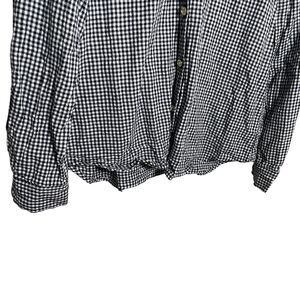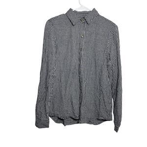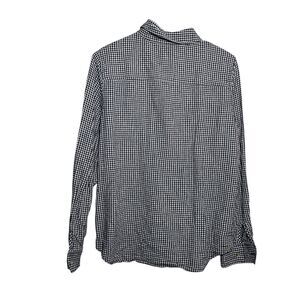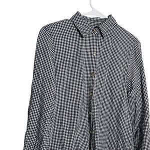 Anne Klein Blouse Women's Small Gingham Button Up Linen Blend Preppy Top