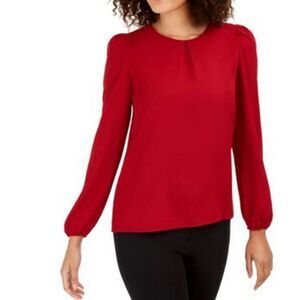 #AnneKlein #Blouse #RuchedShoulders #RoundNeck #PearlButton #KeyholeBack #WomensFashion #ElegantStyle #ChicApparel #Fashionista