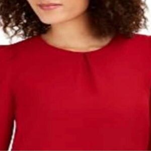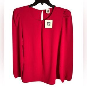 Anne Klein blouse—a harmonious blend of elegance and contemporary design. This sophisticated top features ruched shoulders that add a touch of refinement, complemented by a classic round neckline. The back showcases a delicate keyhole detail fastened with a pearl button, enhancing its feminine allure. Crafted from high-quality materials, this blouse offers both comfort and style, making it a versatile addition to any wardrobe.