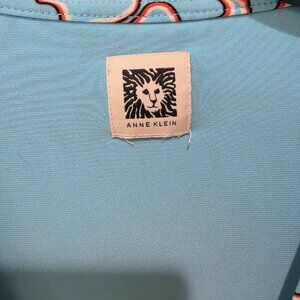 Style this Anne Klein wrap blouse with high-waisted trousers and pointed-toe heels for a sleek office look, or pair it with jeans and ankle boots for casual weekend flair. Add gold jewelry for a polished touch that complements the color palette beautifully. 💙❤️🤍