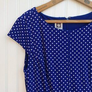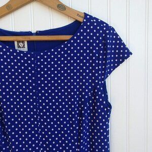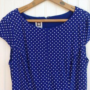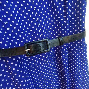 Anne Klein Blue White Polka Dot Cap Sleeve Dress Size 10 Jersey Belted Stretch