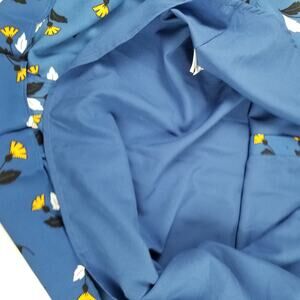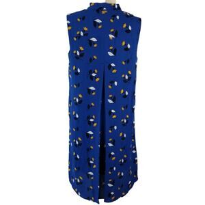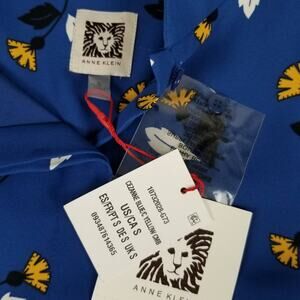 Anne Klein Blue Yellow White Floral Lined Shift Dress Button Front NEW Small
