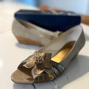 Anne Klein Boone Peep-Toe Wedge | Style 60156928-3YE | Women's Size 8.5 | Metallic Bronze