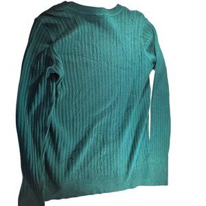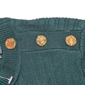 Anne Klein Botanical Green Ribbed Sweater Gold Button Accents Womens Size L