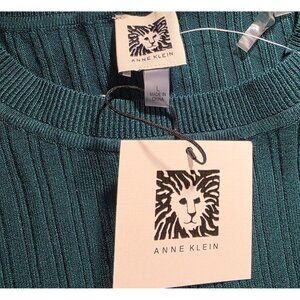 This ribbed Anne Klein sweater provides a sophisticated look with its botanical green hue and gold button details. Ideal for a polished wardrobe addition.