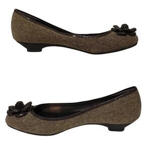 Anne Klein Bow Flats Embellished Slip On Ballet Shoes Woven Brown Womens 8.5M