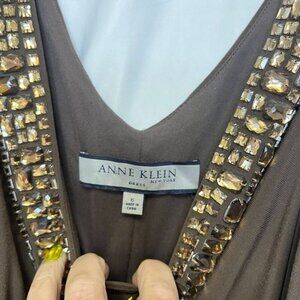 Anne Klein Brown Embellished V-Neck Gown – Size 6 – Preloved